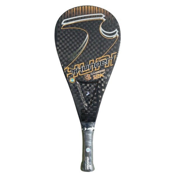 CARACTERÍSTICAS: EL EFECTO INIGUABALBE QUE CARACTERIZA A LA HISTÓRICA THUNDER, GRACIAS A SU PESO ACORDE, SU BALANCE COLOCADO EN LA PARTE SUPERIOR DE LA PALETA, Y SU SUPERFICIE RUGOSA PUNTA DIAMANTE, SE SUMA AHORA, GRACIAS A LA COMBINACIÓN DE MÚLTIPLES CARBONOS DE DISTINTOS FILAMENTOS (3 Y 12 K), UNA MEZCLA PERFECTA DE SOLIDEZ Y POTENCIA. ESTE PROTOTIPO PRESENTA, ADEMÁS, UN NOTABLE MEJORAMIENTO EN SU COMPOSICIÓN INTERNA, RESULTADO QUE SE OBTUVO GRACIAS A SU TRATAMIENTO ESPECIALMENTE REFINADO EN SU GOMA Y A LA DISPOSICIÓN DIAGRAMADA DE SUS CARAS DE CARBONOS (12 K A LA VISTA), LO QUE PERMITE FINALMENTE LOGRAR UNA ADHESIÓN MEJORADA ENTRE AMBOS FACTORES.